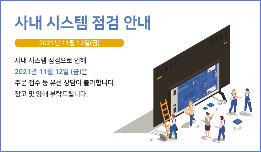 [사내 시스템 점검 안내] 사내 시스템 점검으로 인해 2021년 11월 12일(금)은주문 접수 및 유선 상담이 불가합니다.참고 및 양해 부탁드립니다 (주)엠비에스코퍼레이션