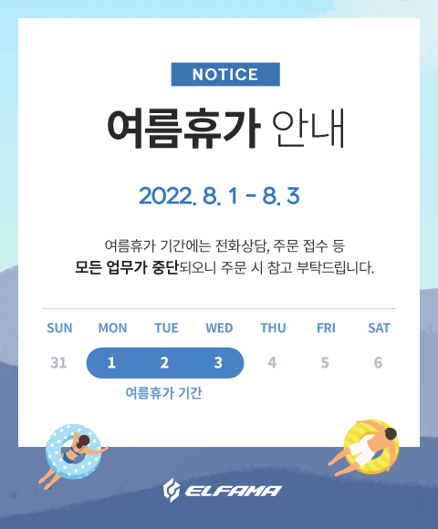 여름휴가 기간에는 모든 업무가 중단되오니 주문 시 참고 부탁드리며